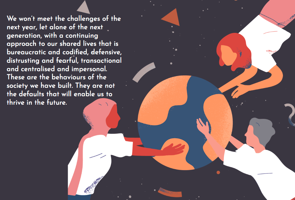 What not to aspire to for our future: - bureaucratic - codified - defensive - distrusting - fearful - transactional - centralised - impersonal Via Relationships Project: