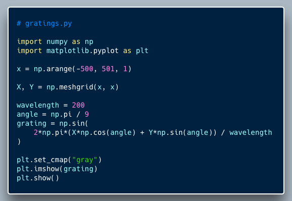 It’s called a sinusoidal grating because the grayscale values vary according to the sine function.