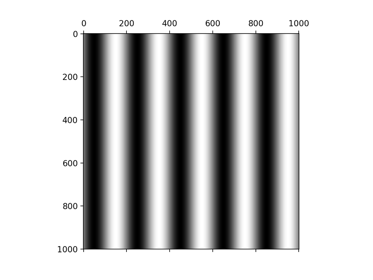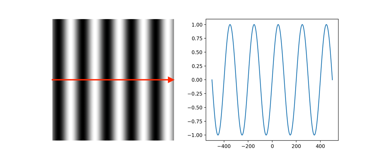 If you plot the values along a horizontal line of the grating, you’ll get a plot of a sine function