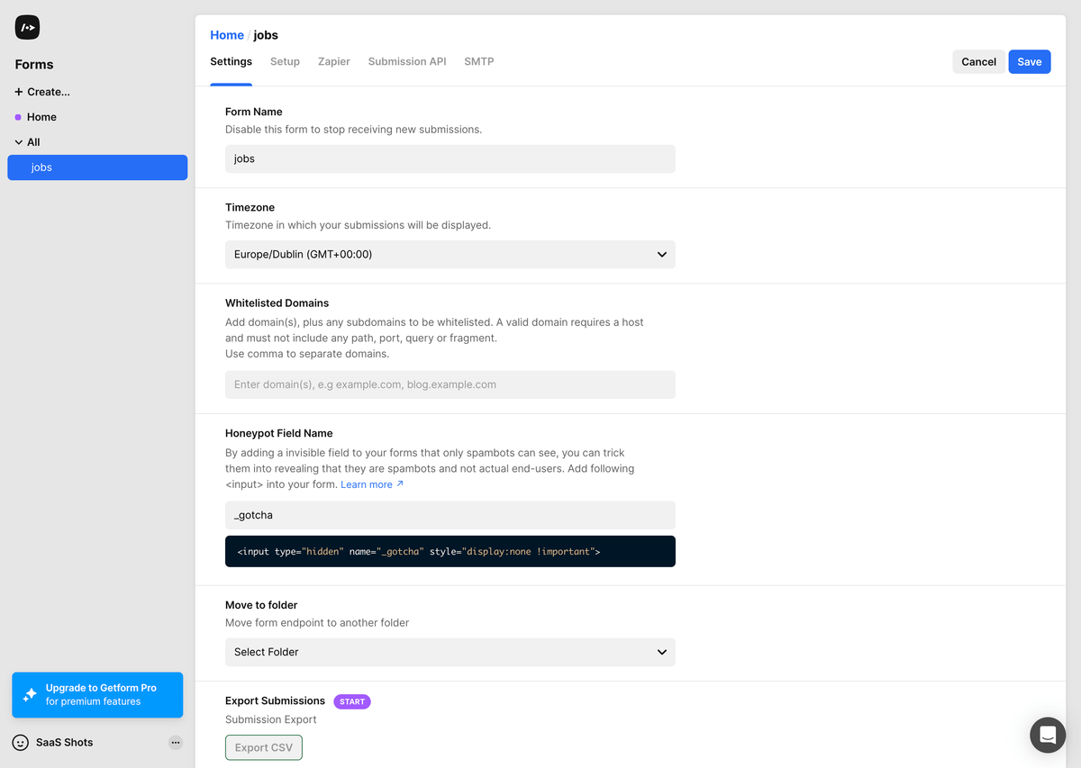 Form Settings Page from