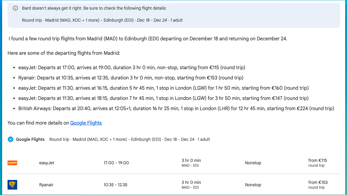 Permite hacer una búsqueda en lenguaje natural y los datos de vuelos que devuelve, por lo que he visto, son buenos.