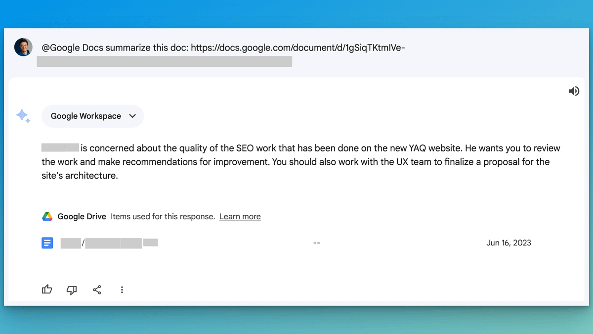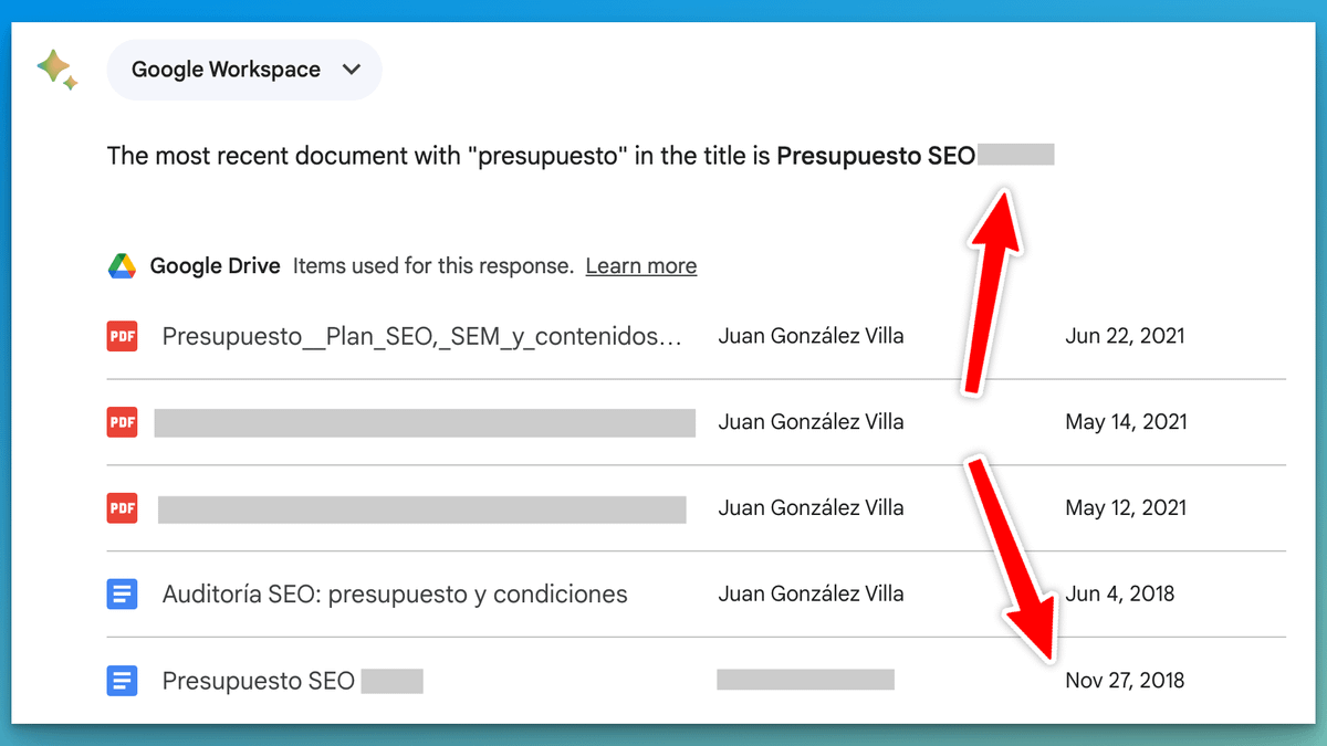 Si no estás seguro de si ha alucinado (se ha inventado el contenido en base al nombre) o de verdad ha recuperado información de un documento existente, fíjate en si se ha disparado la extensión de Workspace o no.