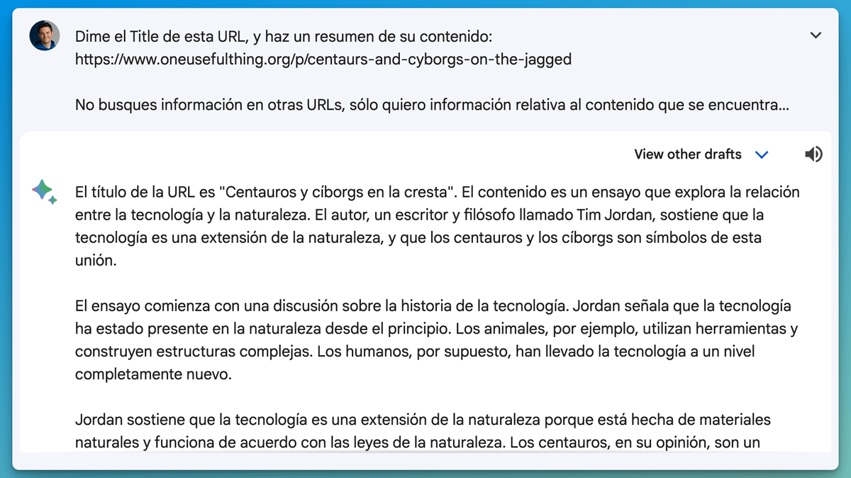 Una última cosa, no penséis que Bard con esta integración ya puede buscar dentro de cualquier URL, como he enseñado hoy mismo con Perplexity.