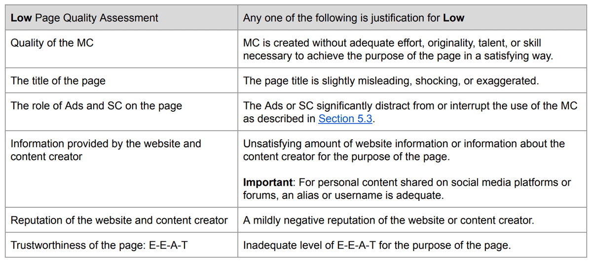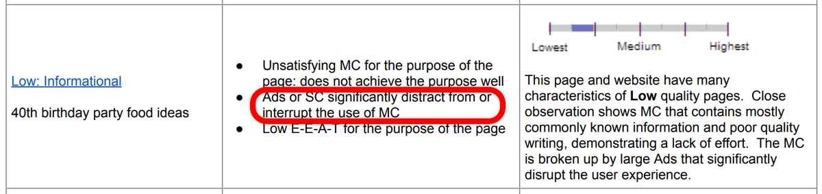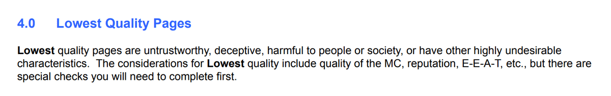 Según la guía, Lowest está reservado para páginas cuyo propósito es engañar o causar daño, o que sean claramente dignas de desconfianza.