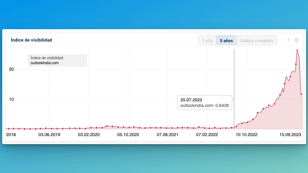 Outlook India es un medio indio que en el último año había crecido mucho en visibilidad en varios países (incluido EEUU) y que los nicheros anglos estaban usando mucho para colocar artículos pagados (a un precio relativamente asequible).
