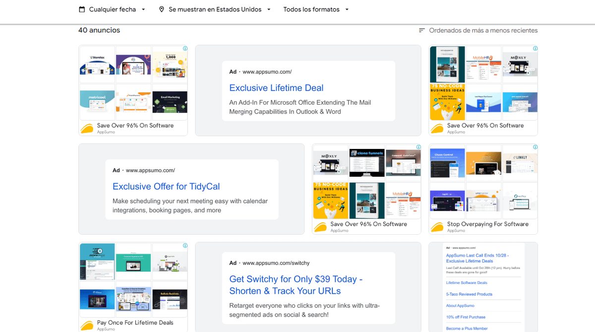 Y ahí está: todos los anuncios del anunciante que te interese, en los últimos 30 días.