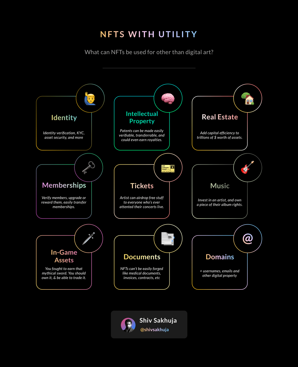 Many of these use cases will take years to materialize, but I do believe the future holds a lot of NFTs in store for us..