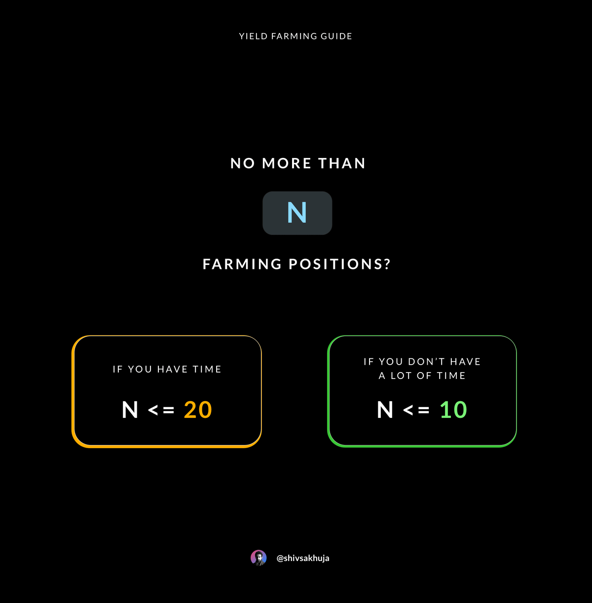 For example: if a yield farm is paying you in inflationary shitcoins, you may want to harvest & swap for stables every few days.