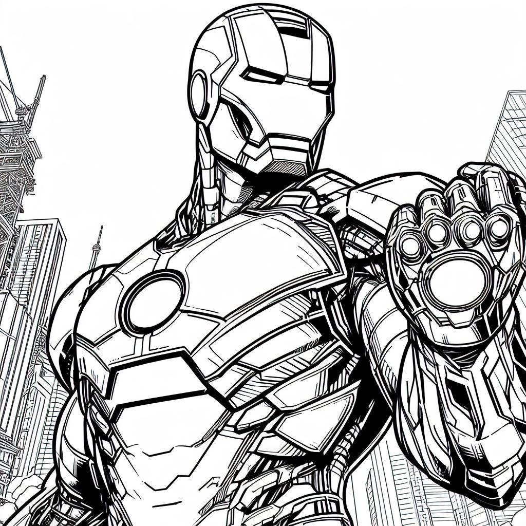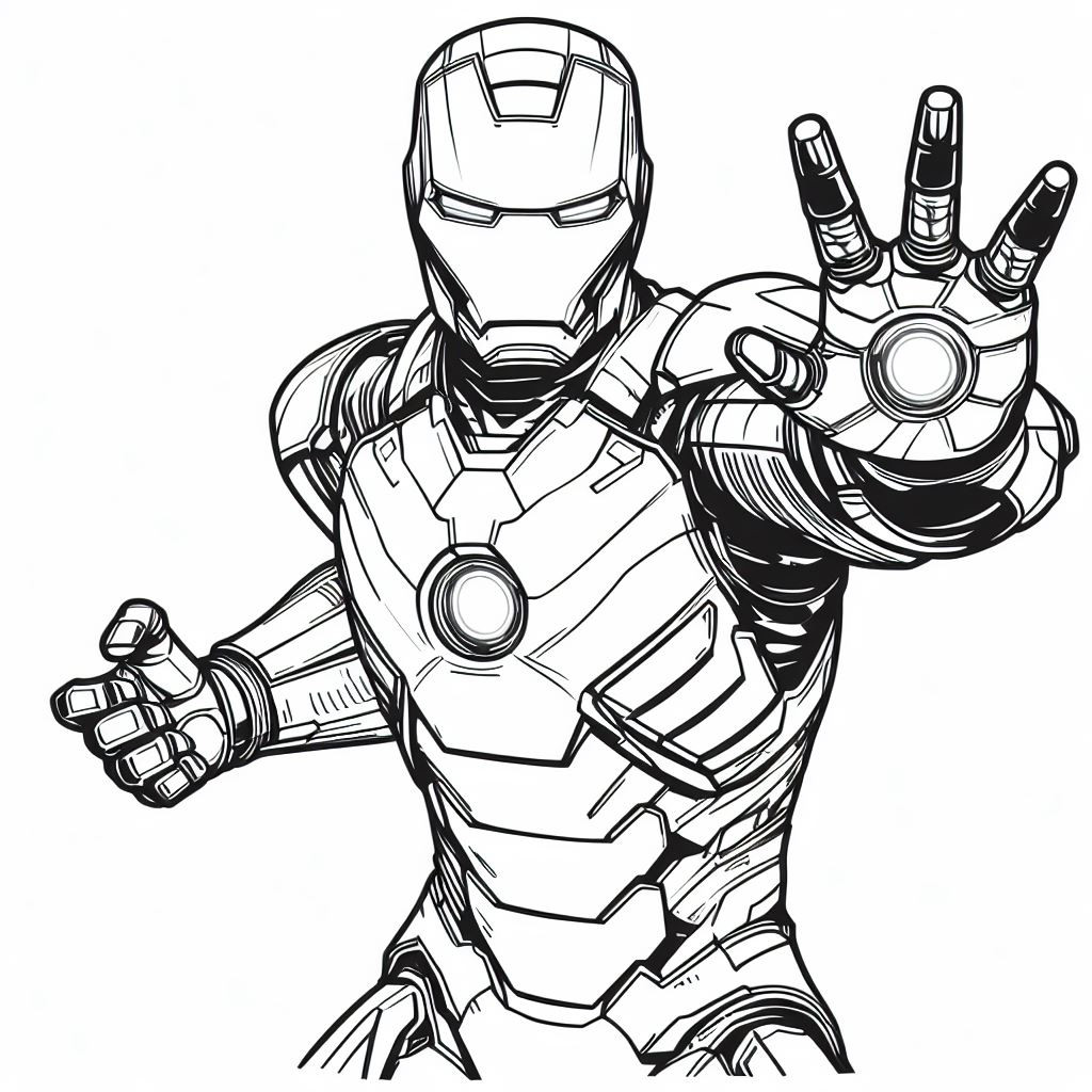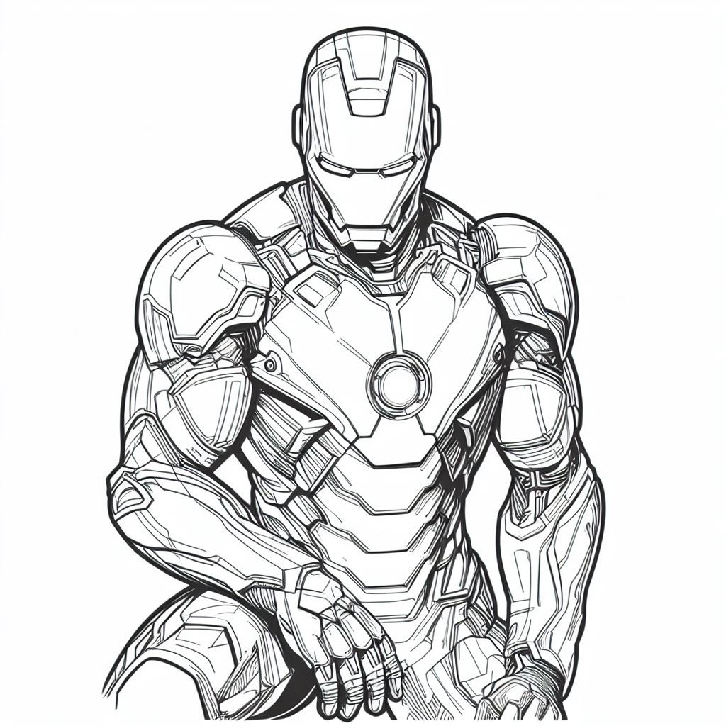 Prompt: Iron Man, clean line art, coloring book page, white background, 2d