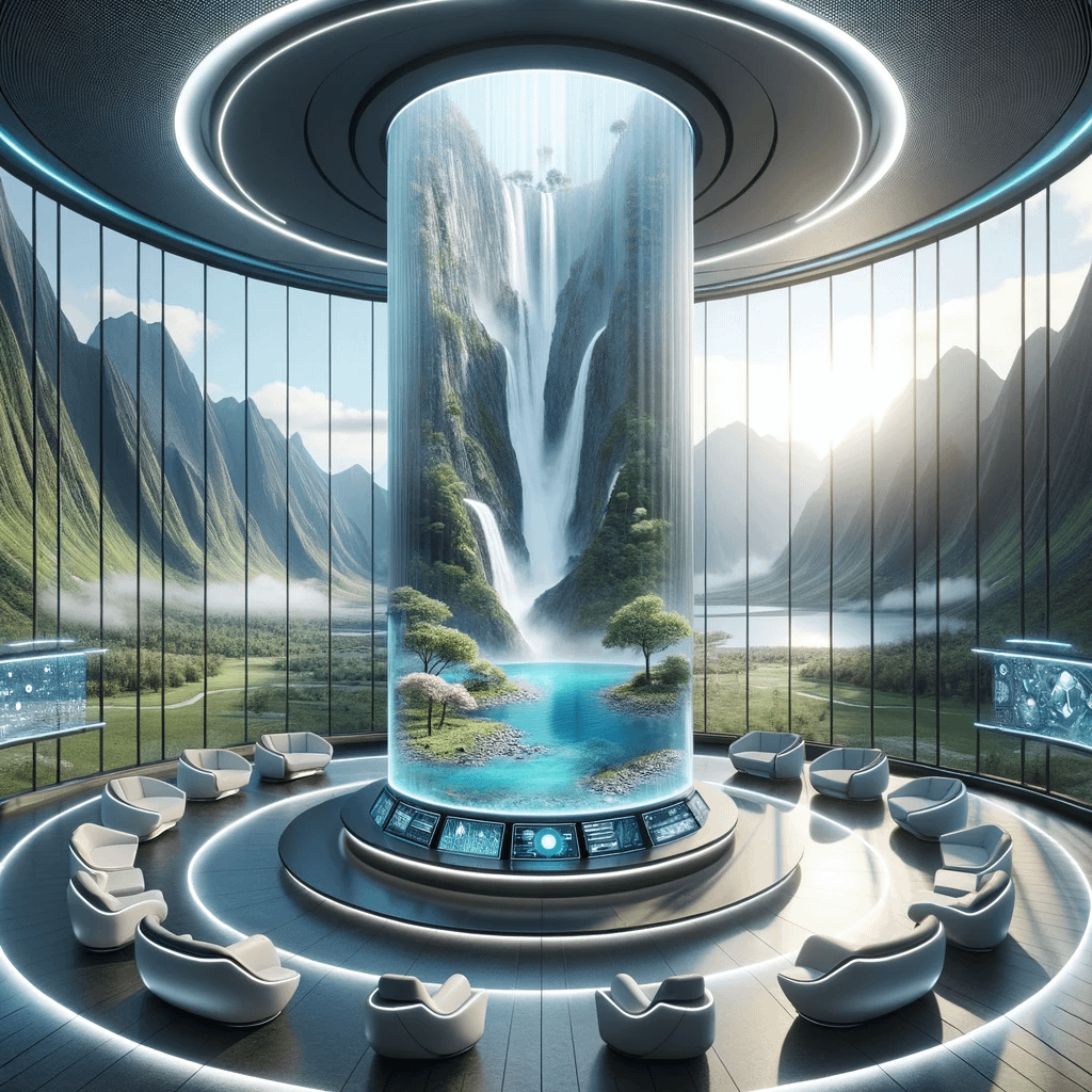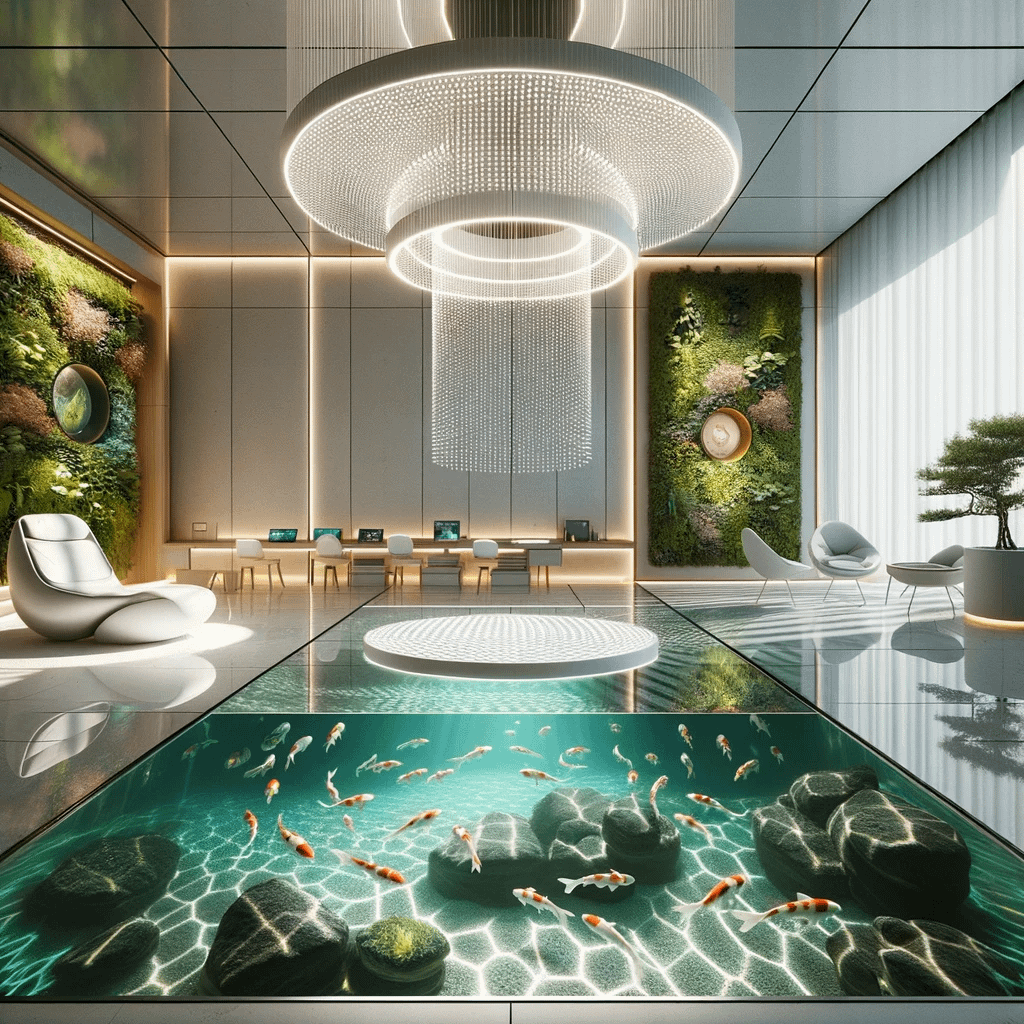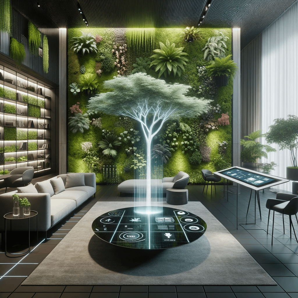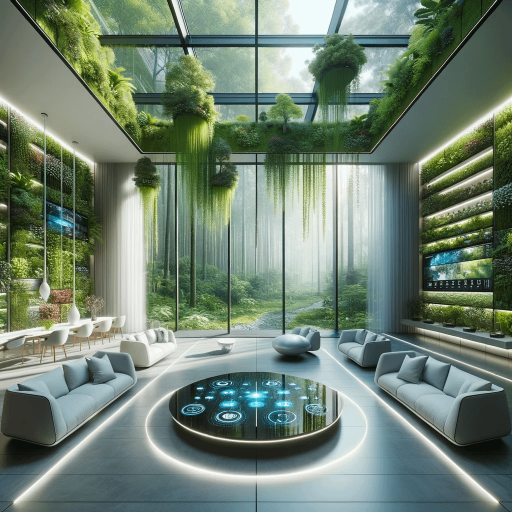 Prompt: Design a room where nature and futurism harmoniously intertwine