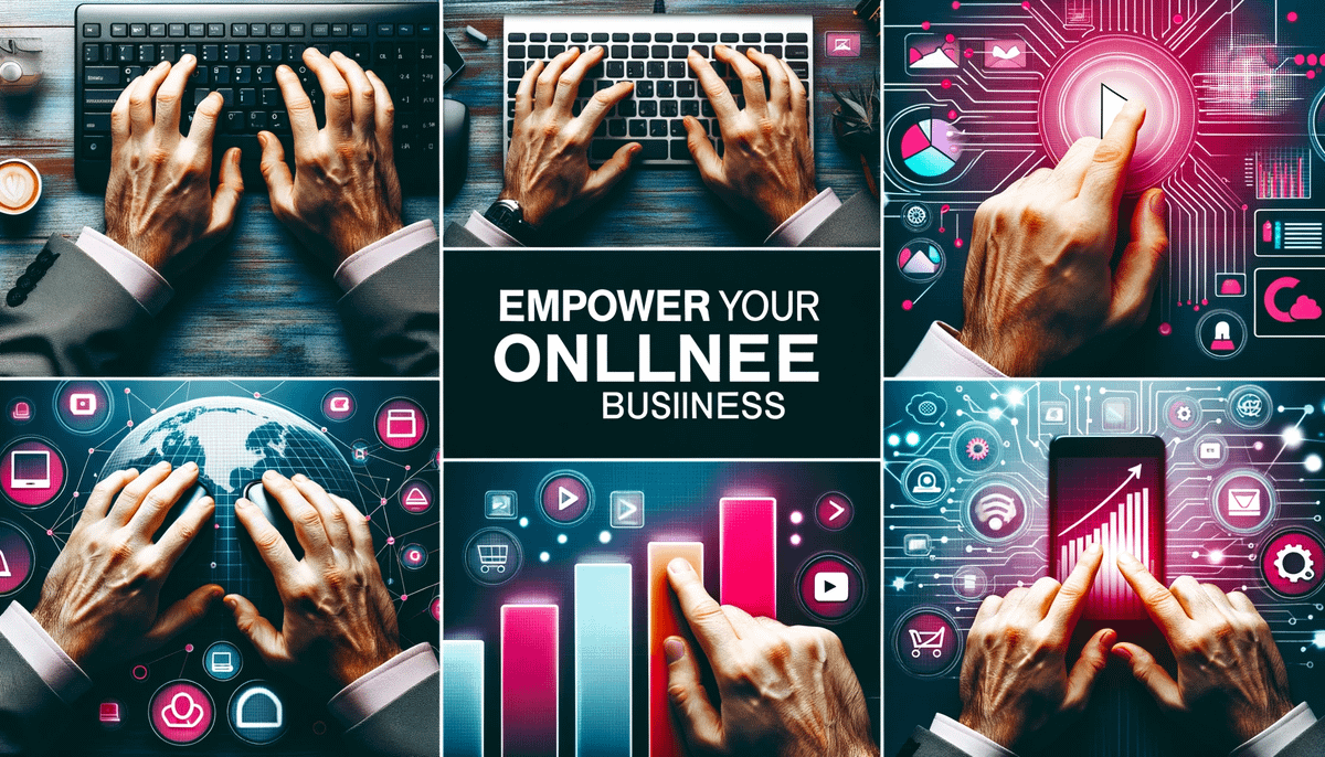 Prompt: Design a vibrant and eye-catching social media banner for a content creator who talks about online business. It should capture the essence of the brand in a visually stunning way.
