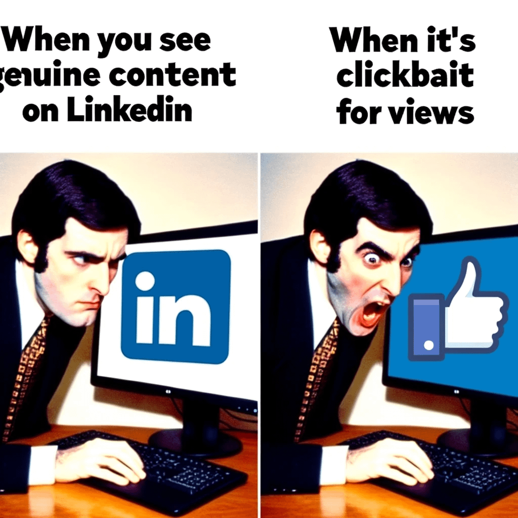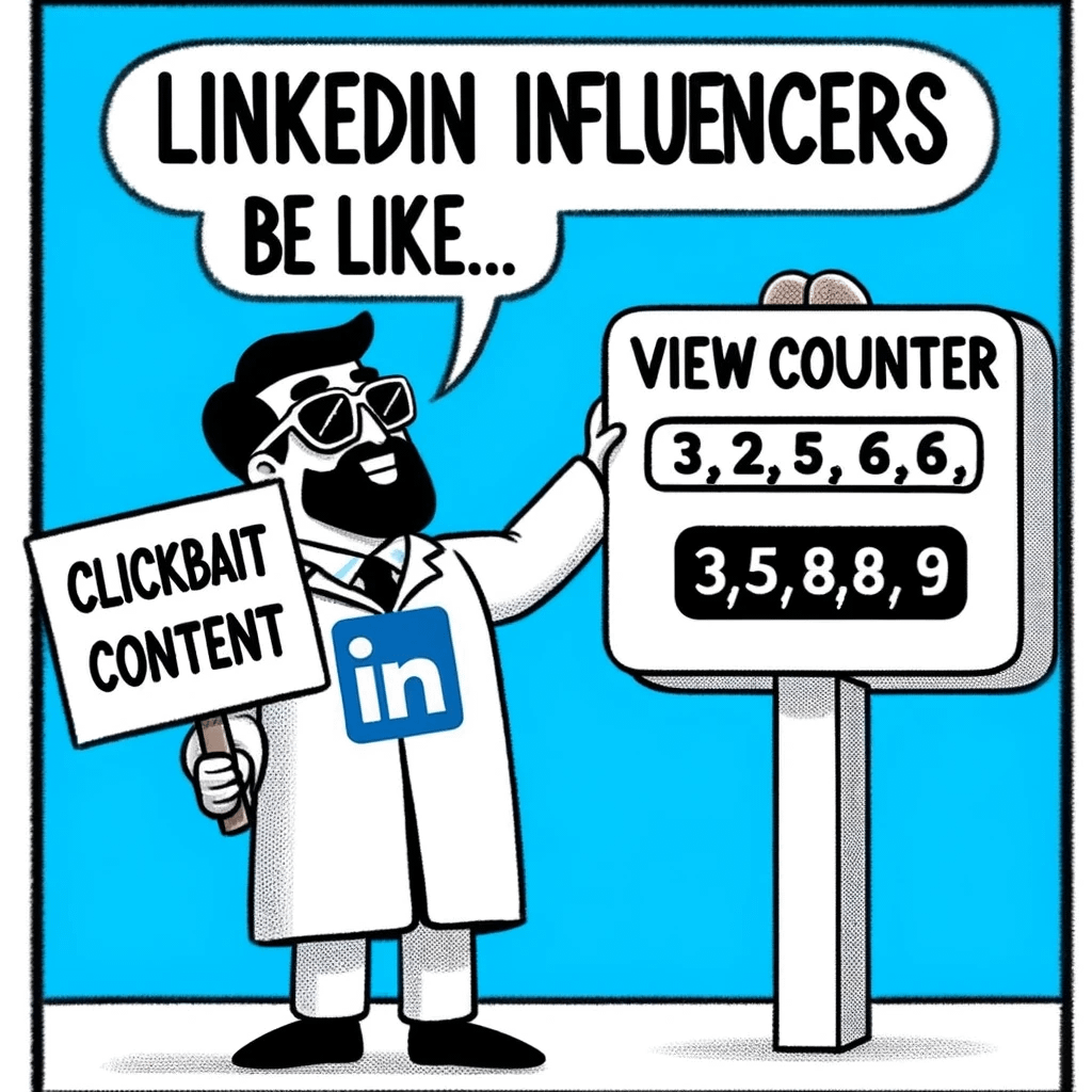 Prompt: Create a meme on how people on LinkedIn create clickbait content just to get more views