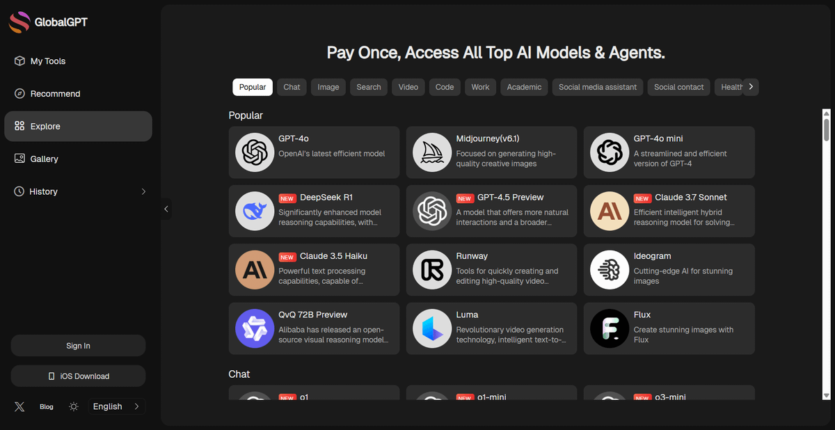 Use @GlbGPT It is an all-in-one AI service hub. Access GPT-4.5, Claude 3.7, DeepSeek-R1, Midjourney, Flux, Perplexity, Runway, Luma, and other top AI tools with one seamless platform. Try here: glbgpt.com