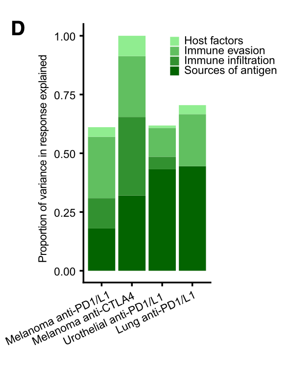 Next, the paper quantified the total proportion of variance in checkpoint inhibitors response that could be explained by all biomarkers mentioned above.