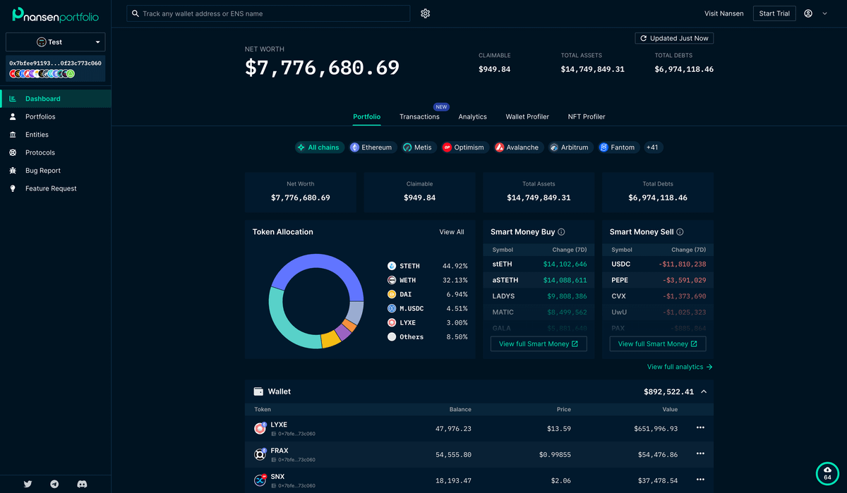 The next tracker to consider is @nansenportfolio, which boasts an impressive depth of on-chain data clustering.