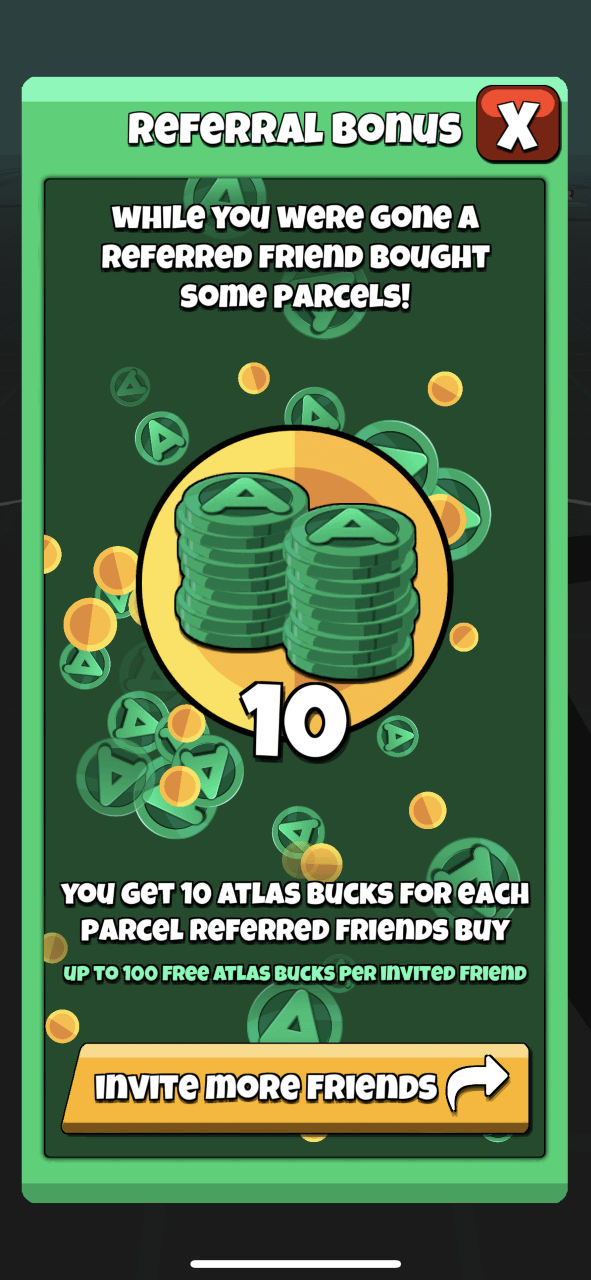Now, with 8 parcels currently owned, I'm only 2 parcels away from a 200 Atlas Buck reward - schwing!