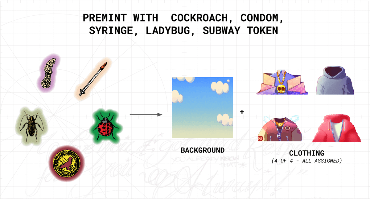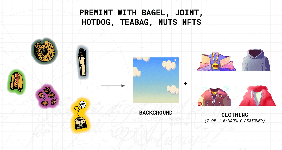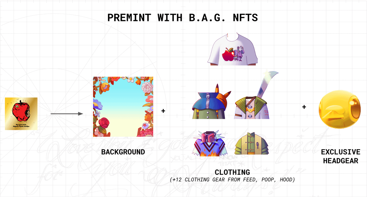 Big Apple Guild (B.A.G) holders are our VIPs for a reason! Premint with a BAG token and get a special flower background, a BAG tee, 4 exclusive outfits + 12 outfits from the other clans, and a golden ๐ฆ helmet!