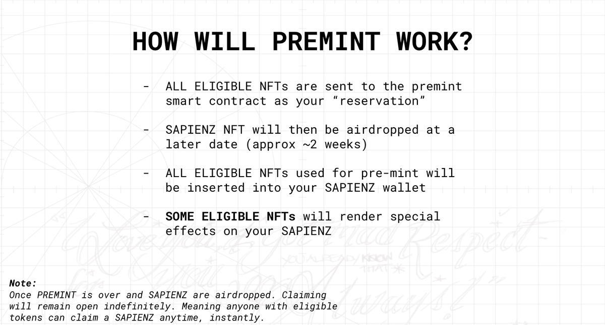 Please note, that despite the premint period, the claim for SAPIENZ will remain open indefinitely for our coo-munity!