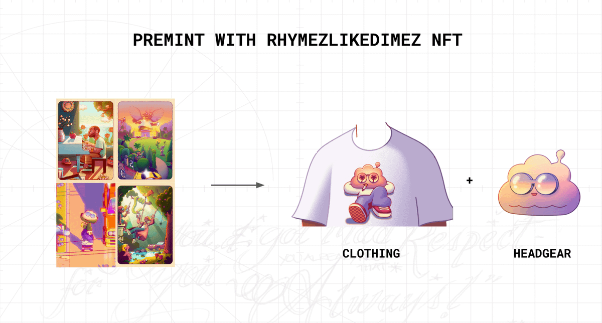 For @rhymezlikedimez holders, they will receive a special Puff Cloud clothing item & the Puff Headgear trait!