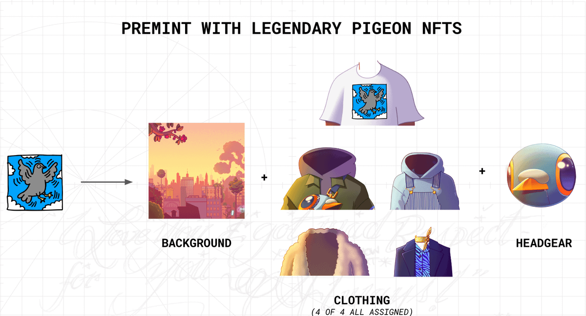 Legendary pigeons get all 4 outfits, a t-shirt with their legendary on it, & the ๐ฆ helmet!