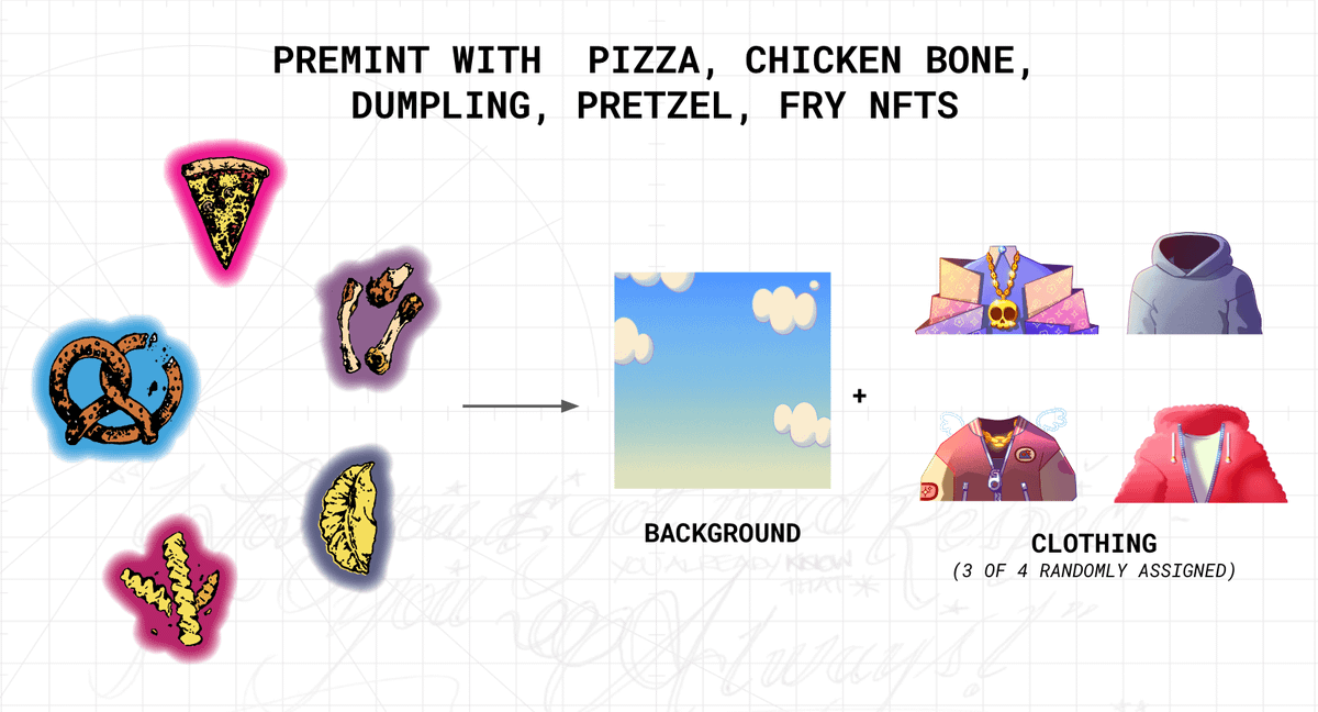 Feed clan will receive a special background and one or multiple of a number of outfits depending on the rarity of their feed token. The least rare feed gets 1 of 4 outfits possibly assigned to the feed clan and the rarest gets all 4 outfits from that group!