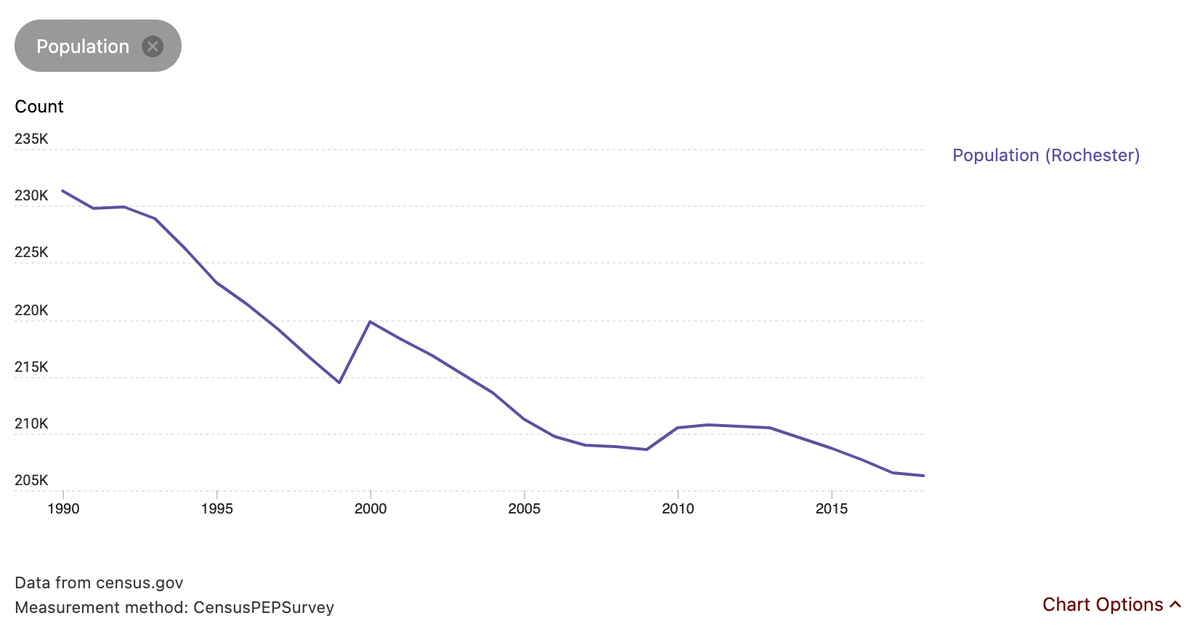 To me, it's a red flag that the Rochester market never bounced back from previous dips and is, in fact, still declining.