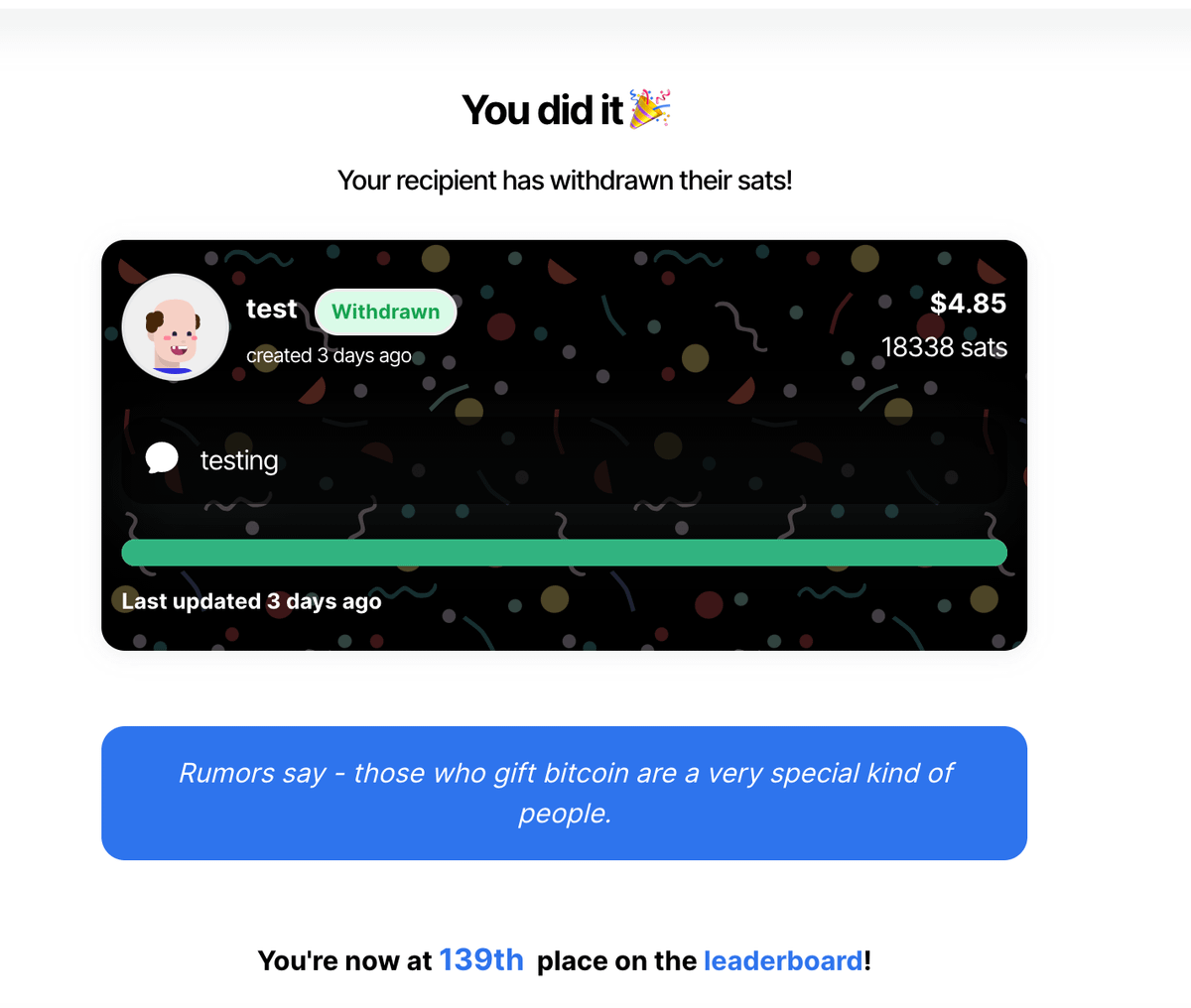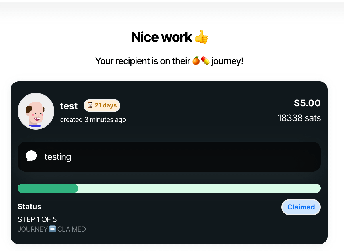 As a tipper, I can see in my progress bar that my tippee has become a Bitcoiner!