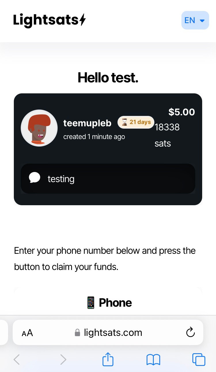 To test the product, I created a gift $5 worth that I will redeem myself with my phone number.