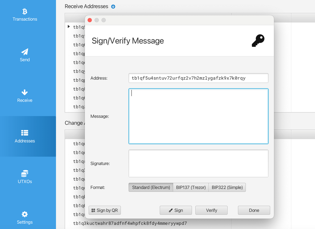 If you want to verify that you really own the address, you can go to the "Addresses" tab, find the address in question and sign a message with it.