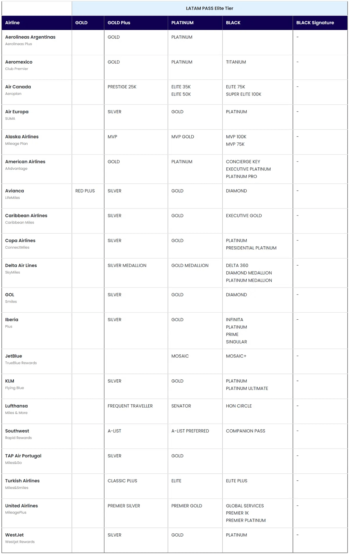 The Chilean carrier Latam is offering a status match program in partnership with StatusMatch.com where it is matching statuses from the following airlines for a one-time fee of $39.