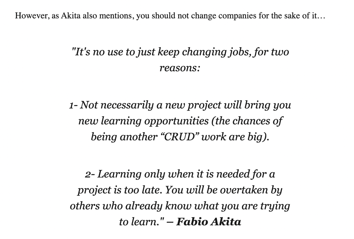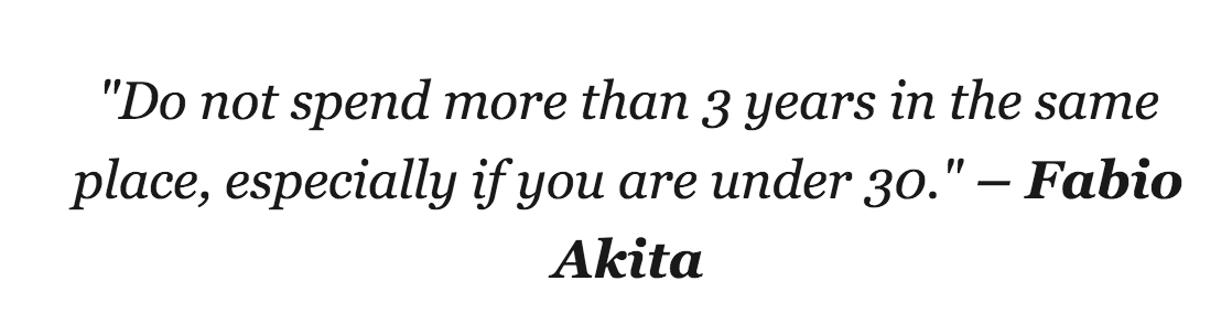 You should be changing at least one of the 4 Ps: Platform, Product, Process or People at least once every 2 years, not only during your 20s but actually during your entire career.