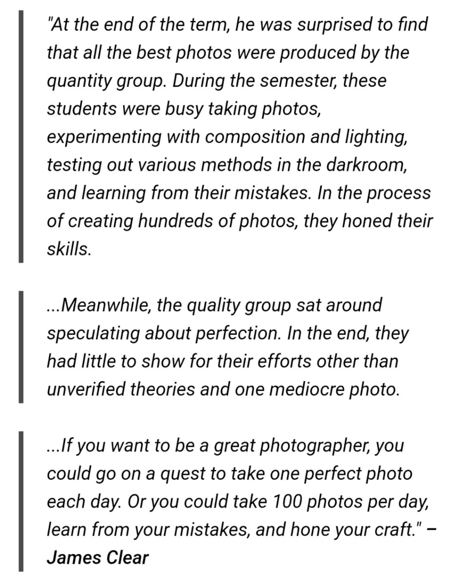"When it comes to "honing your skills", focusing on the quantity of reps almost always will trump focusing on the quality of reps" by