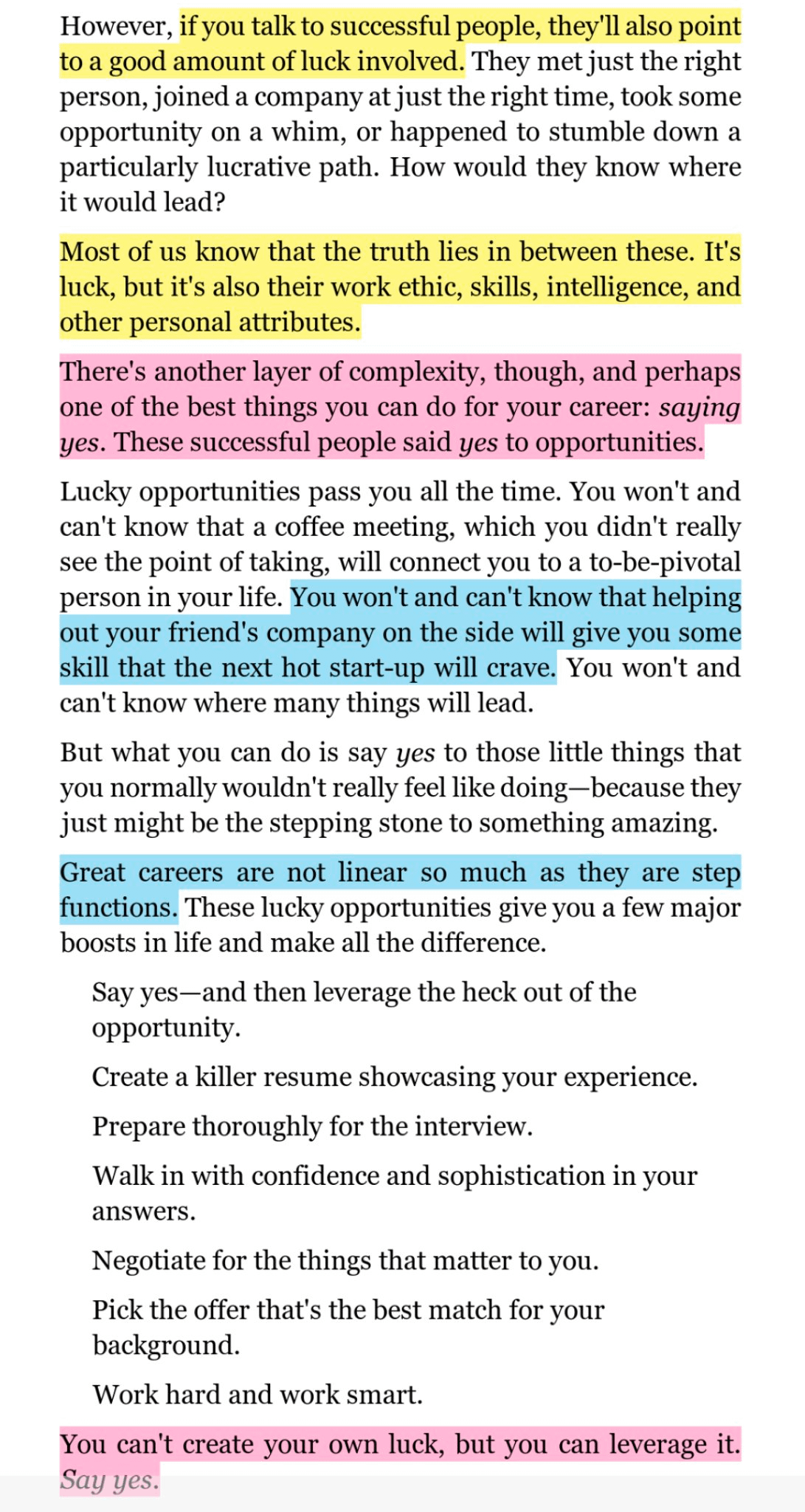 "You can’t create your own luck, but you can leverage it. Say yes.”