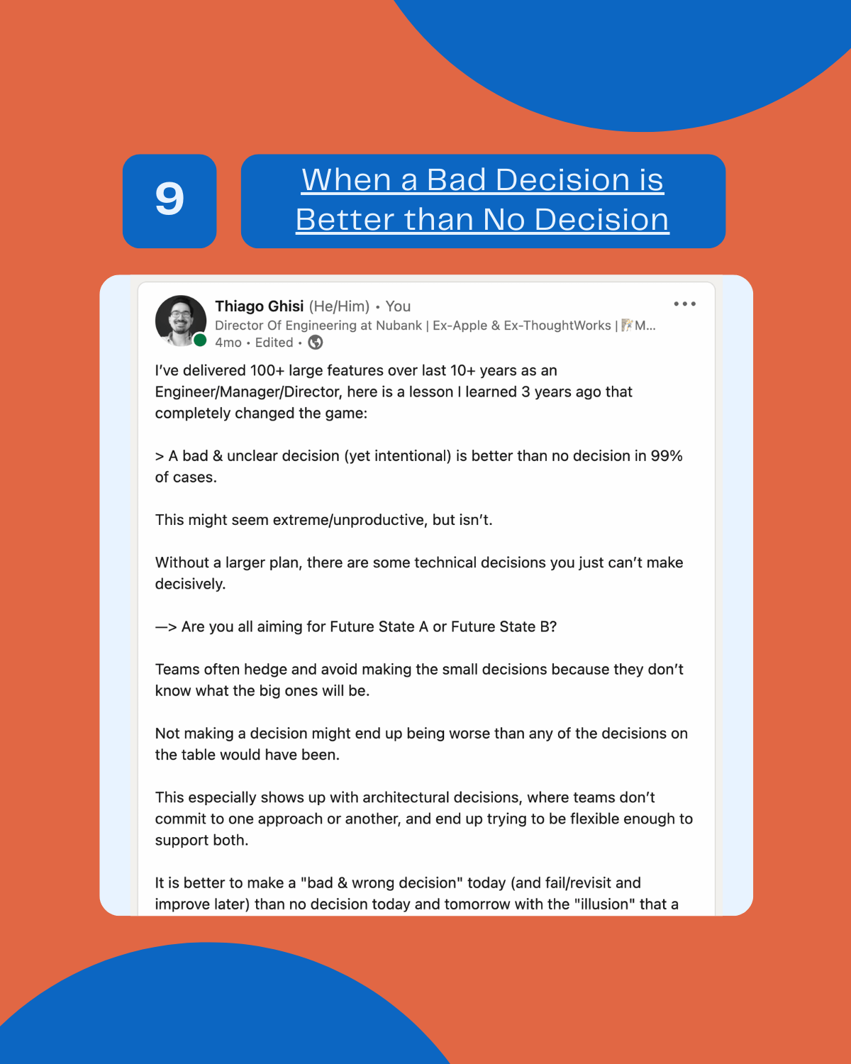 9️⃣ When Bad Decisions are Better than No Decisions: