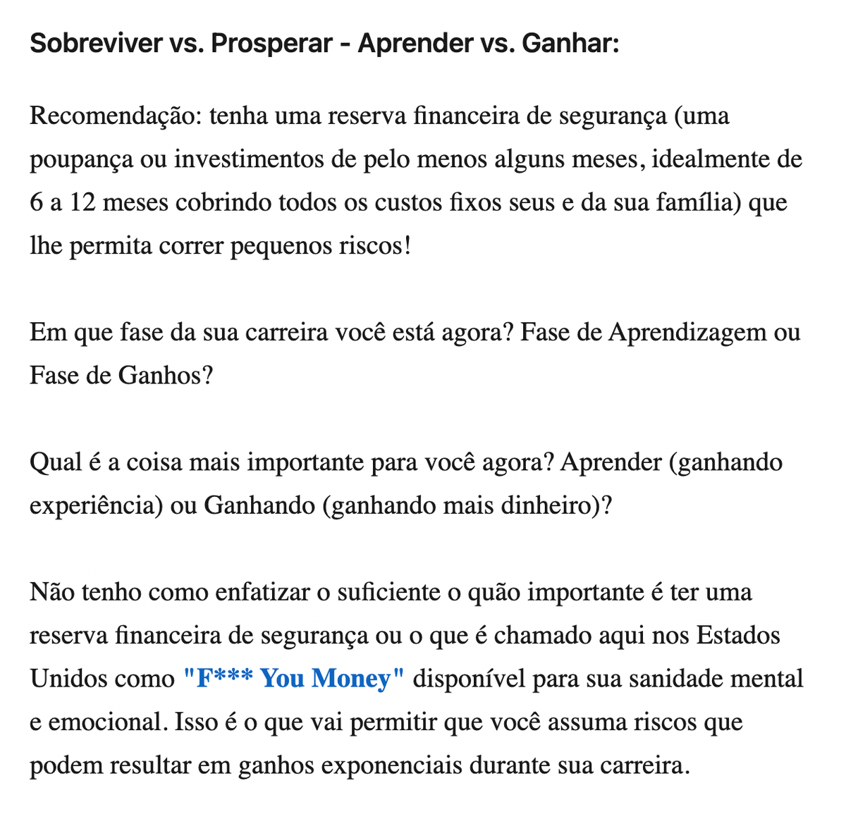 Aprender (experiência) ou Ganhar (dinheiro)?