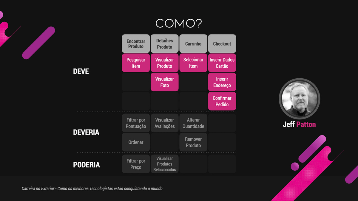 Uma ferramenta que me ajudou muito é o mapeamento de histórias de usuário.