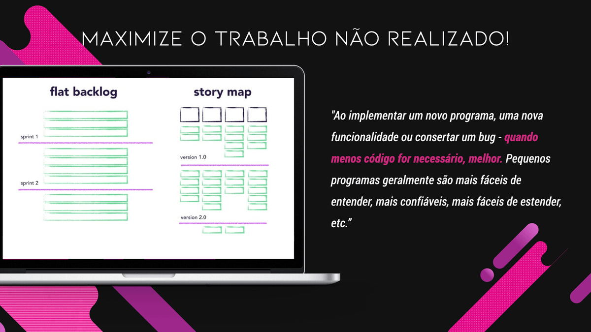 A dica não tão óbvia que influenciou minha carreira nos últimos anos é maximizar o trabalho não realizado. Maximize o número de linhas não escritas.