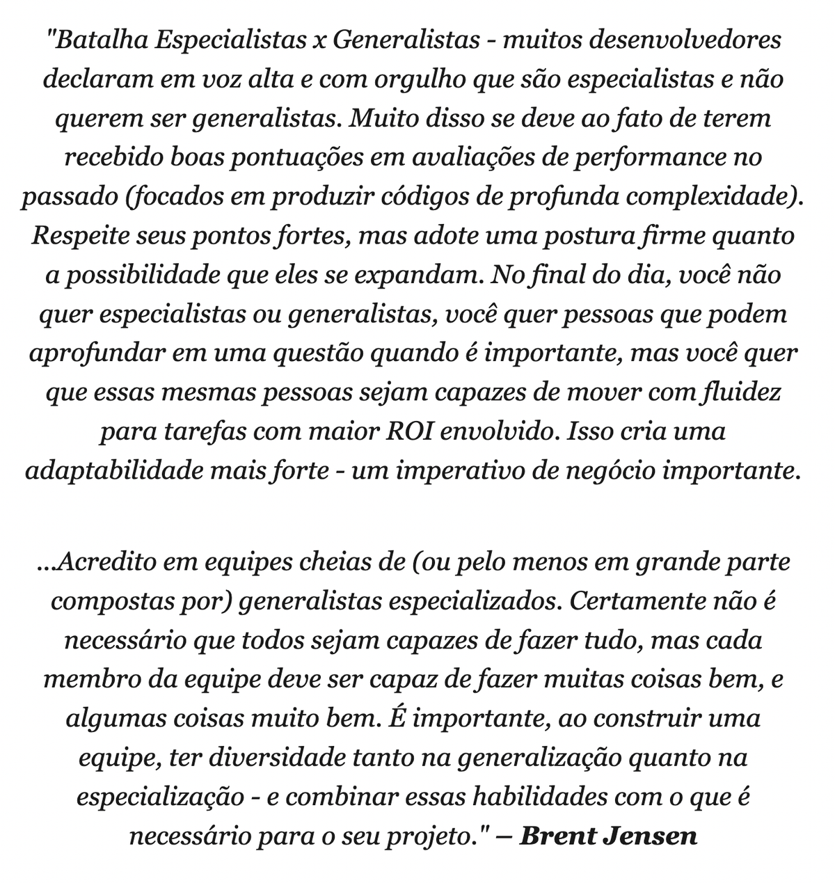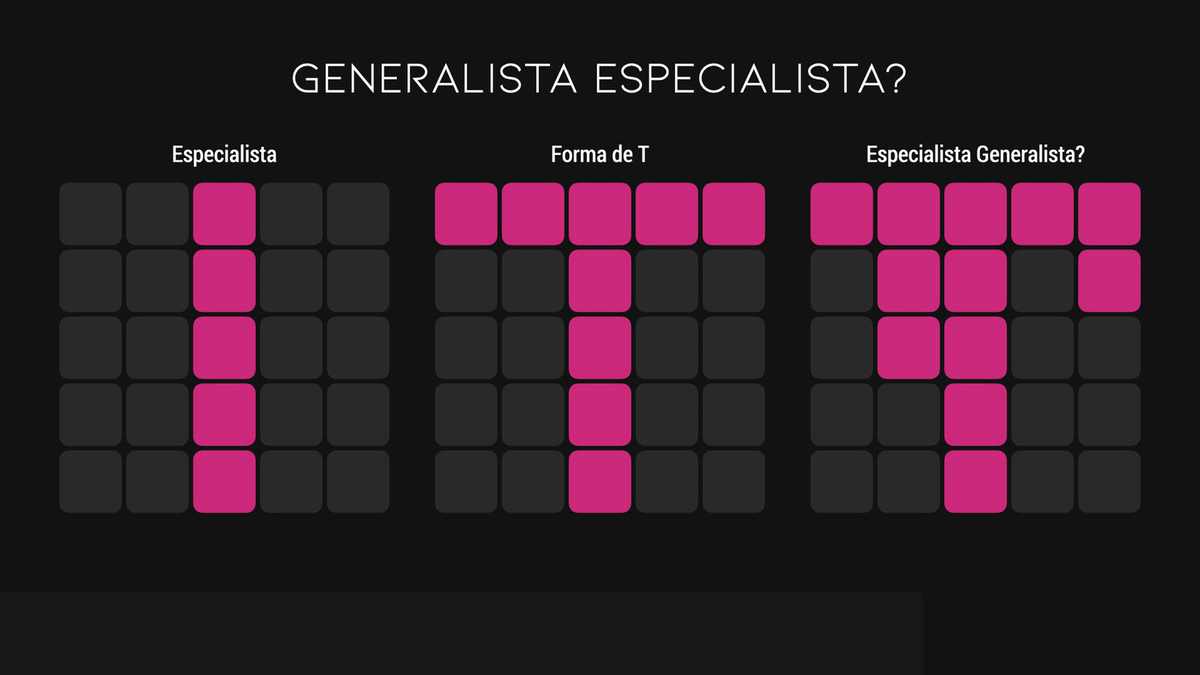 O que estou sugerindo aqui é que você tente ser Generalista Especialista ou Especialista Generalista.