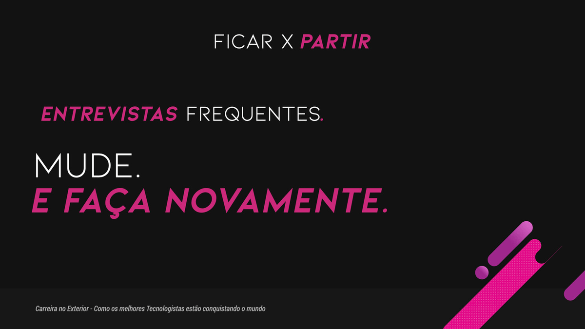 Esteja aberto sempre e sempre faça entrevistas. Especialmente quando você estiver super feliz e engajado no seu trabalho/empresa atual.