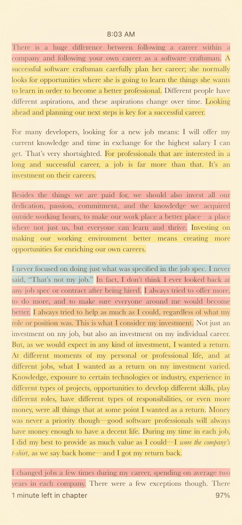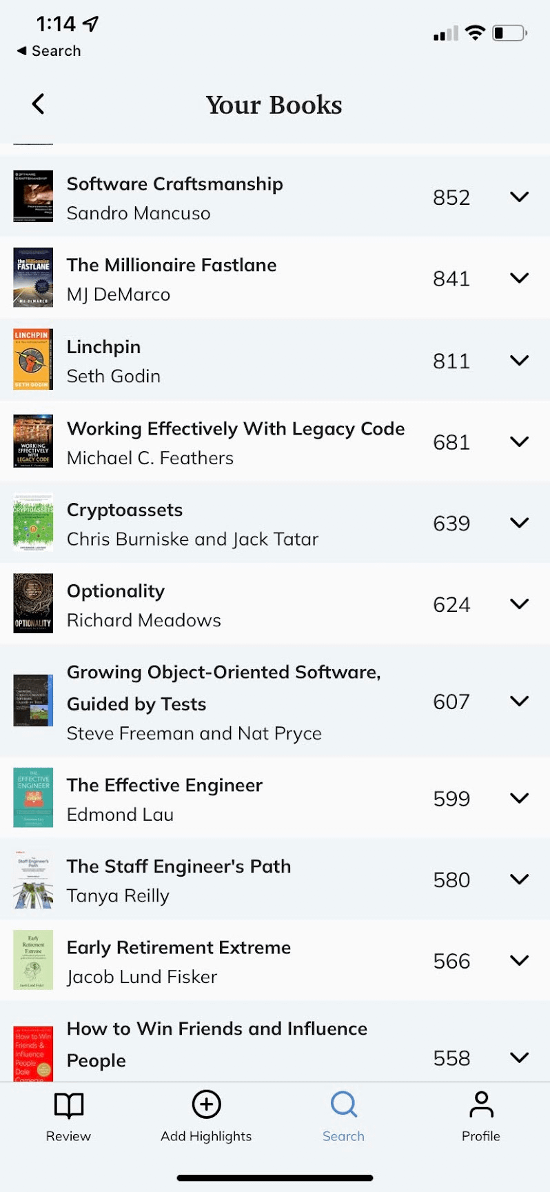 I've read 500+ books and accumulated 55.000+ notes & highlights over the last ten years. 99% of those books were non-fiction & mostly around Software Engineering.