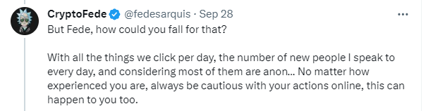 I use this tweet as a reminder that even official domains can be hacked and overtaken.