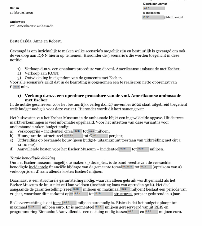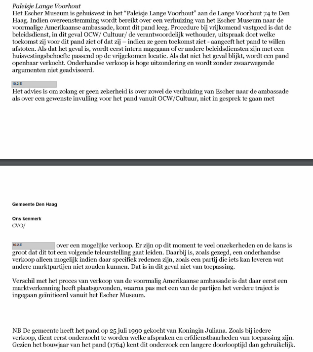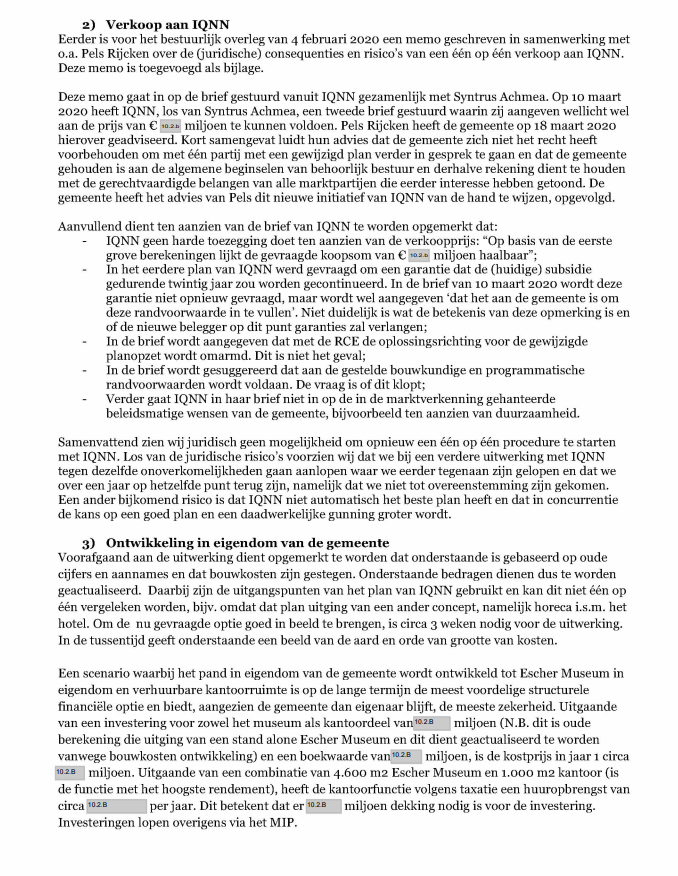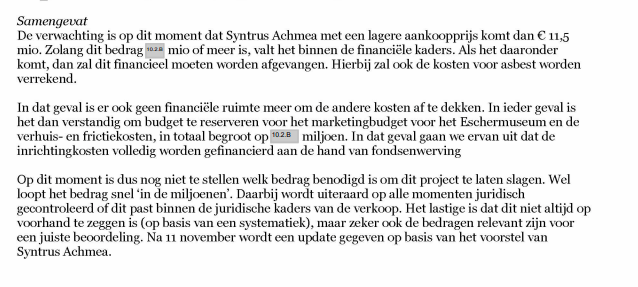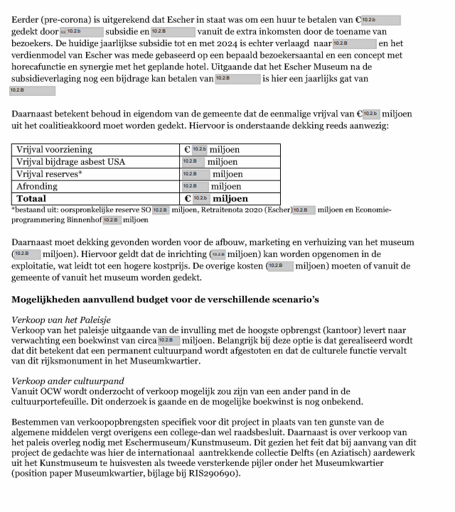 En hier de allerlaatste documenten uit het WOBverzoek. Een notitie van 11-2-2021 waaruit blijkt dat het huidige college ook onderzoekt of bestaande cultureel vastgoed kan worden verkocht om toch die miljoenen voor een #eschermuseum bij elkaar te schrappen.