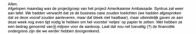En op p.106 blijkt uit een gespreksleidraad dat Synthrus Achmea zich terugtrekt uit Zuidwest. Laat dat nu ook de portefeuille van #ries zijn geweest. ( en Ries was ook diegene die aandrong op het voeren van exclusieve gesprekken met IQNN / Synthrus over de Amerikaanse Ambassade).