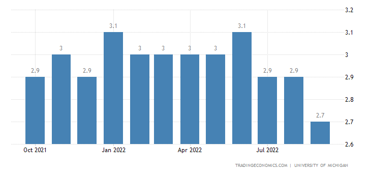 The longer-term expectations of the price changes dropped from 2.9% last month to 2.7% in September.