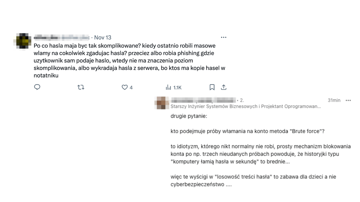 Zagrożenie, przed którym się bronimy, to NIE jest naparzanie przez hackera losowymi hasłami w ekran logowania, bo a nuż zgadnie.