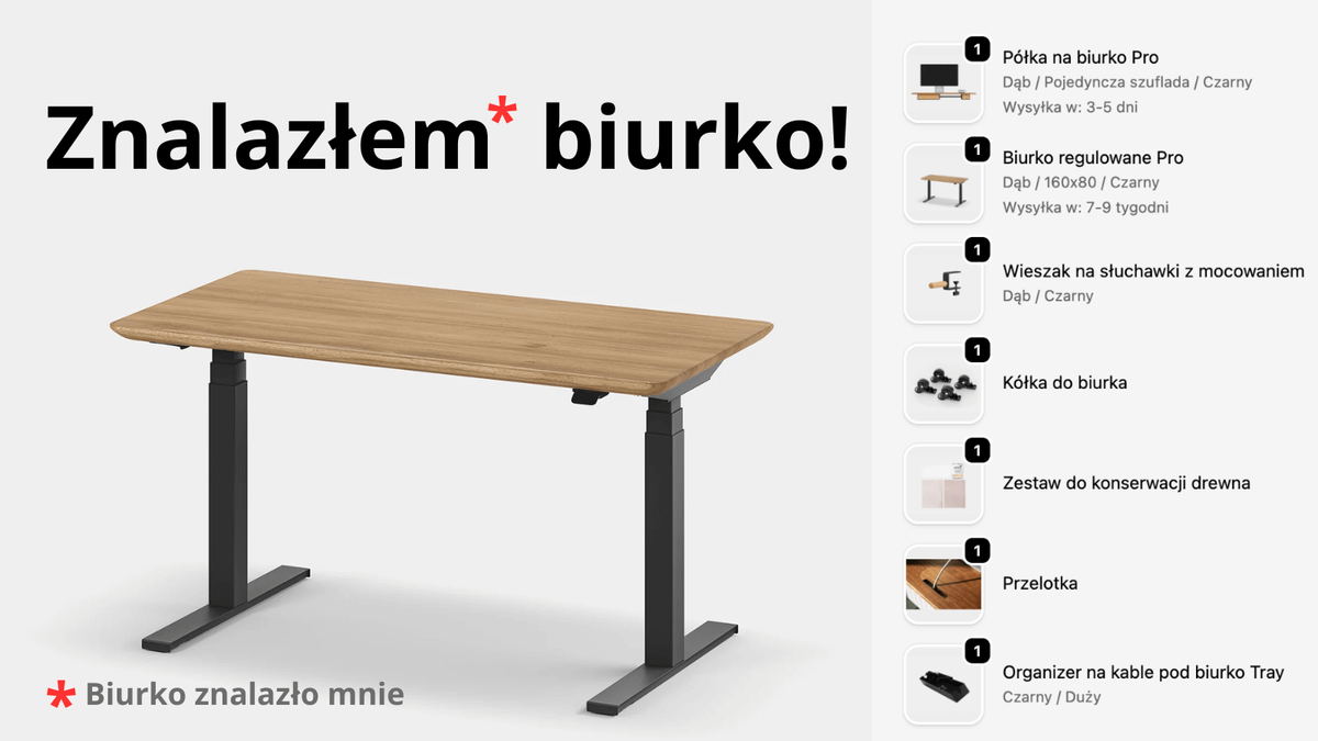 Dostanę od nich biurko (takie wybajerowane, spełniające wszystkie moje oczekiwania), a w zamian wspomnę o nich w social mediach i newsletterze.