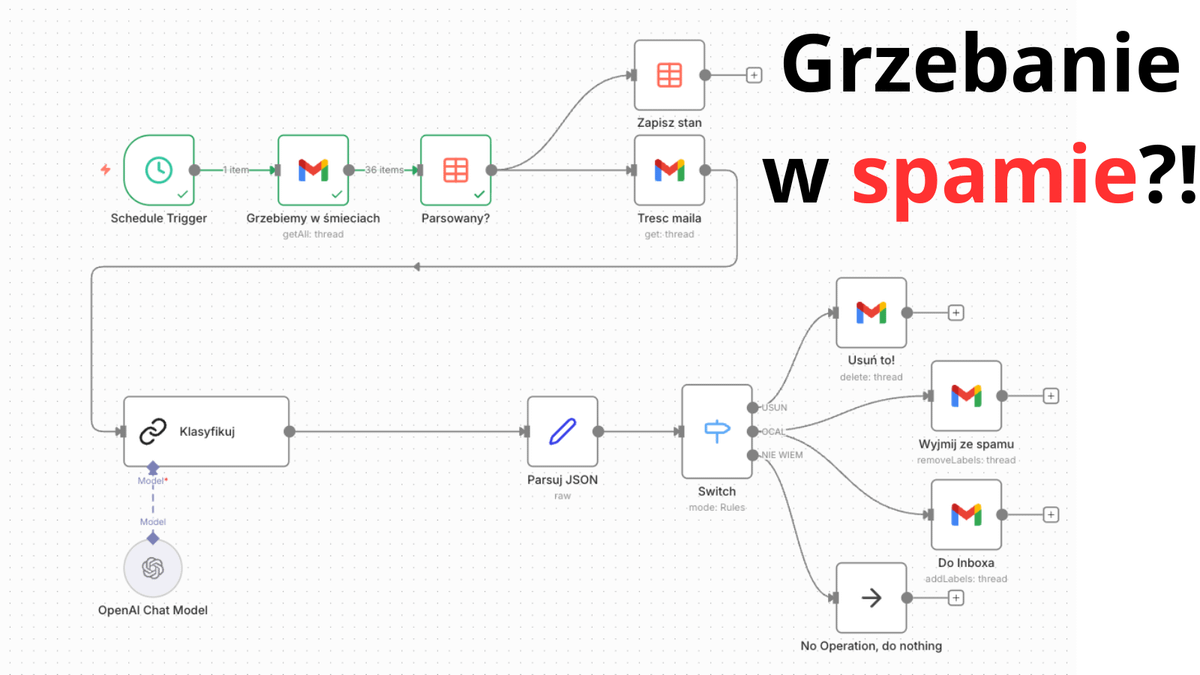 Dodałem też akcję "NIC NIE RÓB", która jest wybierana, gdy LLM ma jakiekolwiek wątpliwości, co należy zrobić z daną wiadomością. Takie maile czekają wtedy na mnie - a ja zaglądam do folderu ze spamem nadal 1-2x na miesiąc.