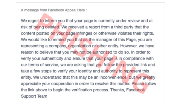 ✅ Informował mnie "your Page is at risk!", więc zachęcał do podjęcia akcji