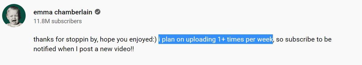 "ahahah wono, are you stupid? You said consistency is not key but look at her first video description. She even started to upload almost daily at this period. This must be why she blew up! "