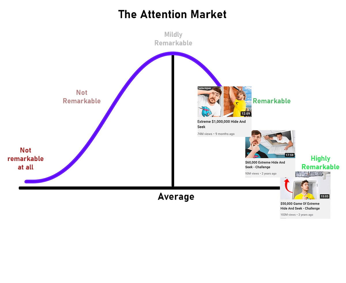 Every single video can be mapped somewhere here. The more "highly remarkable" videos you can pull in a row, the faster your growth will be.